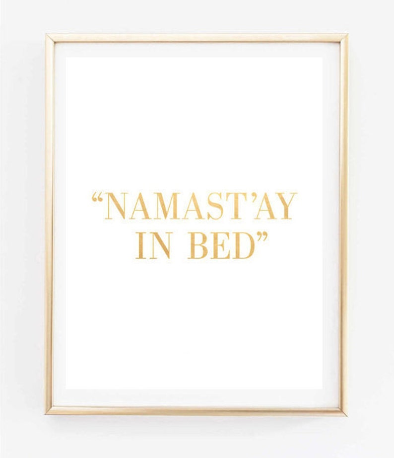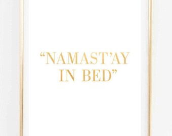 Namast Ay In Bed Fashion Room Quote Faux Gold Print Quote Typographic Print Pinterest Inspirational Tumblr Room Decor Quotes Teen