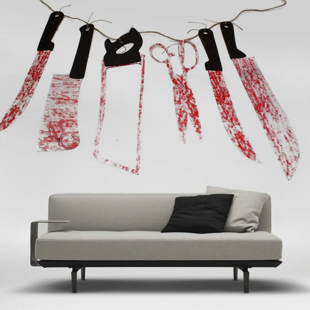 Us 2 99 40 Off Bloody Weapons Garland Props Halloween Zombie Vampire Party Decorations Supplies Scary Hanging Banner Home Decoration In Party Diy