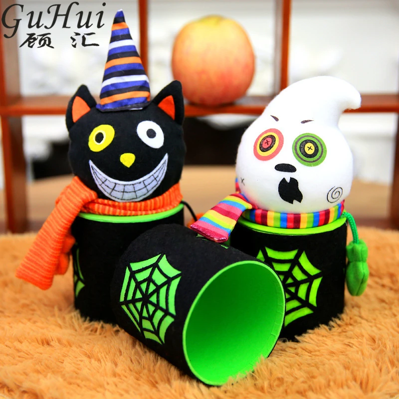 Us 9 04 41 Off 2pcs Halloween Party Decorations Lovely Halloween Pumpkin Ghost Zombie Smiling Black Cat Shape Candy Jar Bottle Case Kids Favor In