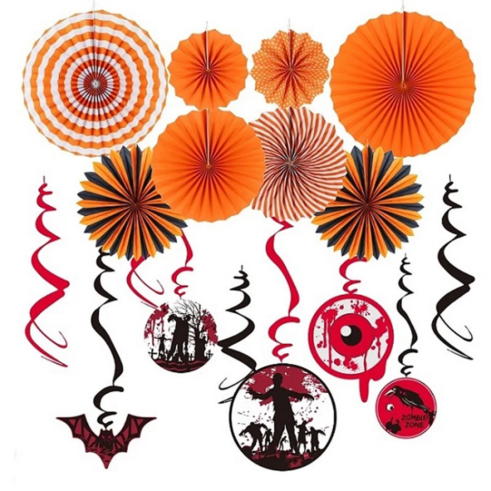 Us 11 74 16 Off 17pcs Bloody Halloween Party Decoration Set Paper Rosette Fans Pinwheels Ceiling Metallic Hanging Swirls Zombie Party Supplies In
