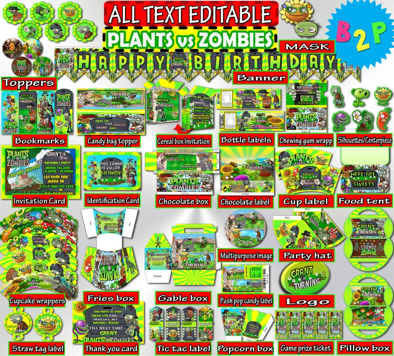 Plants Vs Zombies Birthday Kit Editable Birthday Kit Birthday Decorations Printable Birthday Party Set Birthday Instant Download