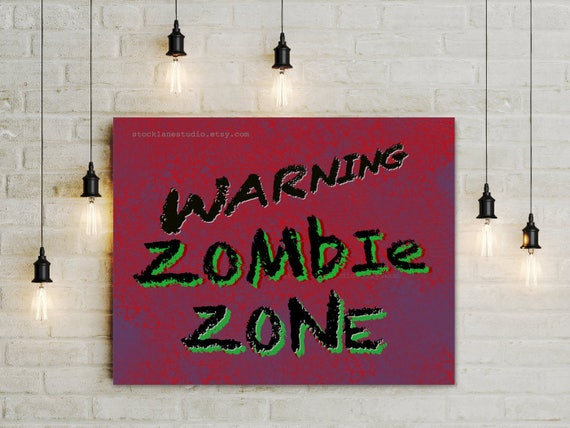 Printable Halloween Party Decorations Digital Diy Haunted House Party Sign Warning Zombie Zone Boys Room Wall Art