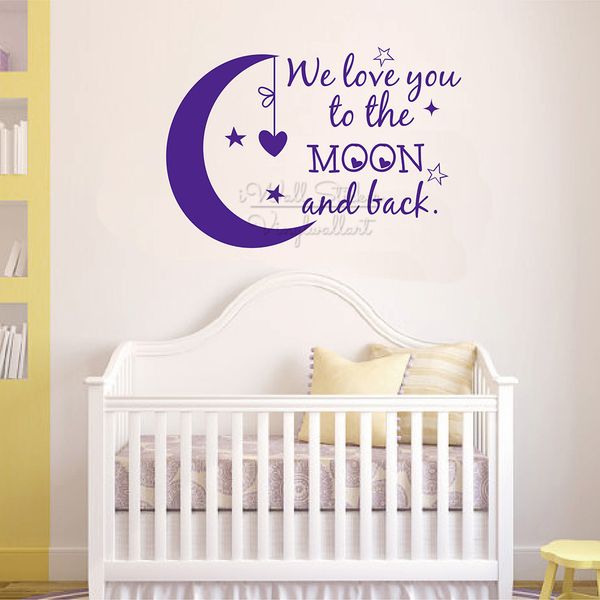 We Love You To The Moon And Back Quotes Wall Sticker Baby Nursery Wall Decal Removable Children Room Quote Vinyl Wall Decor Quotes Stickers For Walls
