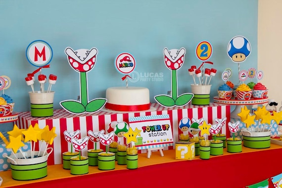 Super Mario Inspired Birthday Decorations Personalised Printables Mario Cart Party Decorations Super Mario Party 1st Birthday Party