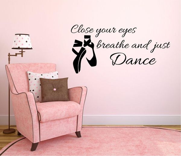 Removable Ballet Shoes Wall Decal Quotes Close Your Eyes Breathe And Just Dance Wall Stickers For Kids Rooms Bedroom Decoration Sticker Quotes For