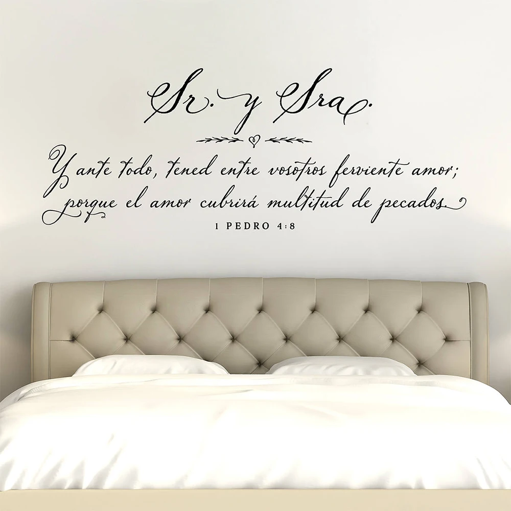 Us 5 89 25 Off Spanish Bedroom Wall Decor Quotes Wall Decal Sr Y Sra Y Ante Todo Tened Entre Vostros Ferviente Amor Home Decoration D657 In Wall