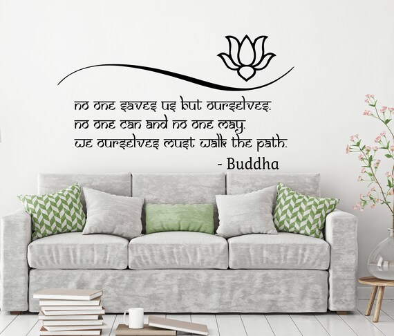 Wall Decals Quotes Vinyl Sticker Decal Quote Lotus Flower Buddha No One Saves Us But Ourselves Home Decor Art Bedroom Design Interior C37
