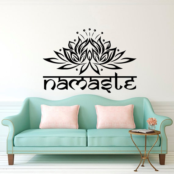 Namaste Wall Decal Lotus Flower Vinyl Sticker Decals Quotes Buddha Decal Quote Wall Decor Bedroom Yoga Studio Decor Lotus Art X230