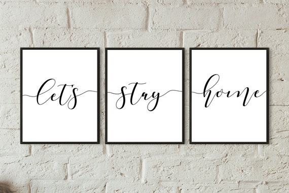 Family Room Wall Art Print Quotes Bedroom Lets Stay Home Print Set Of 3 Home Printable Wall Art Above Bed Decor Set Printable Quote Download